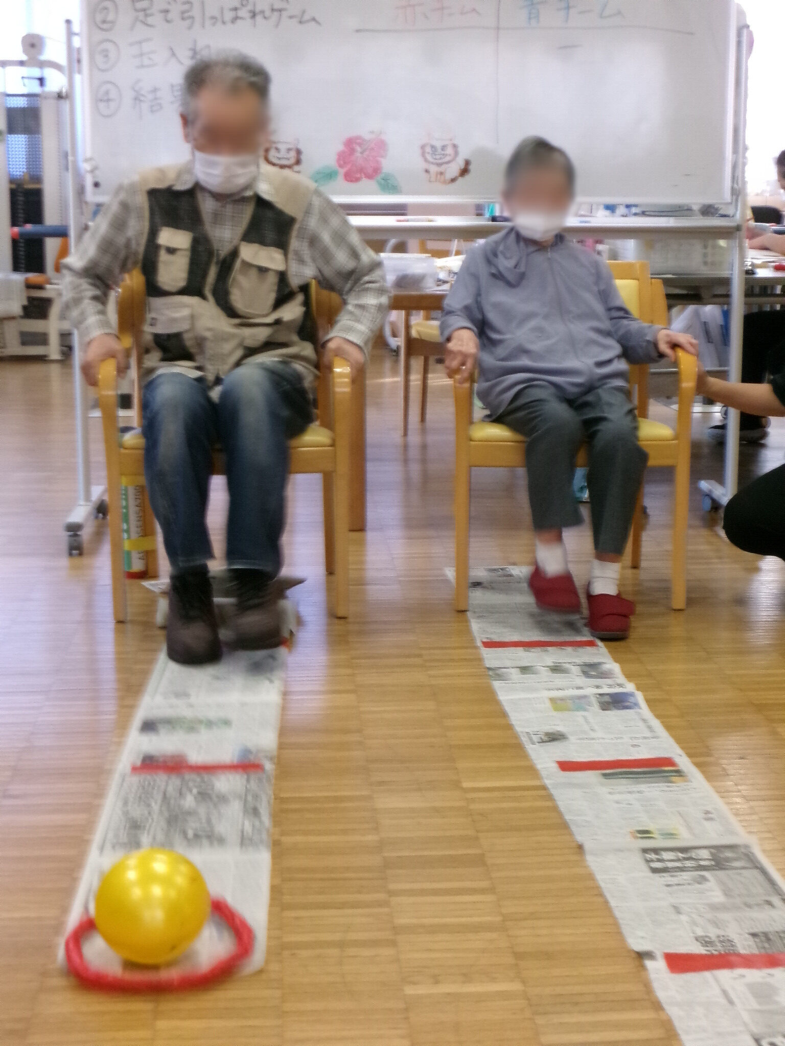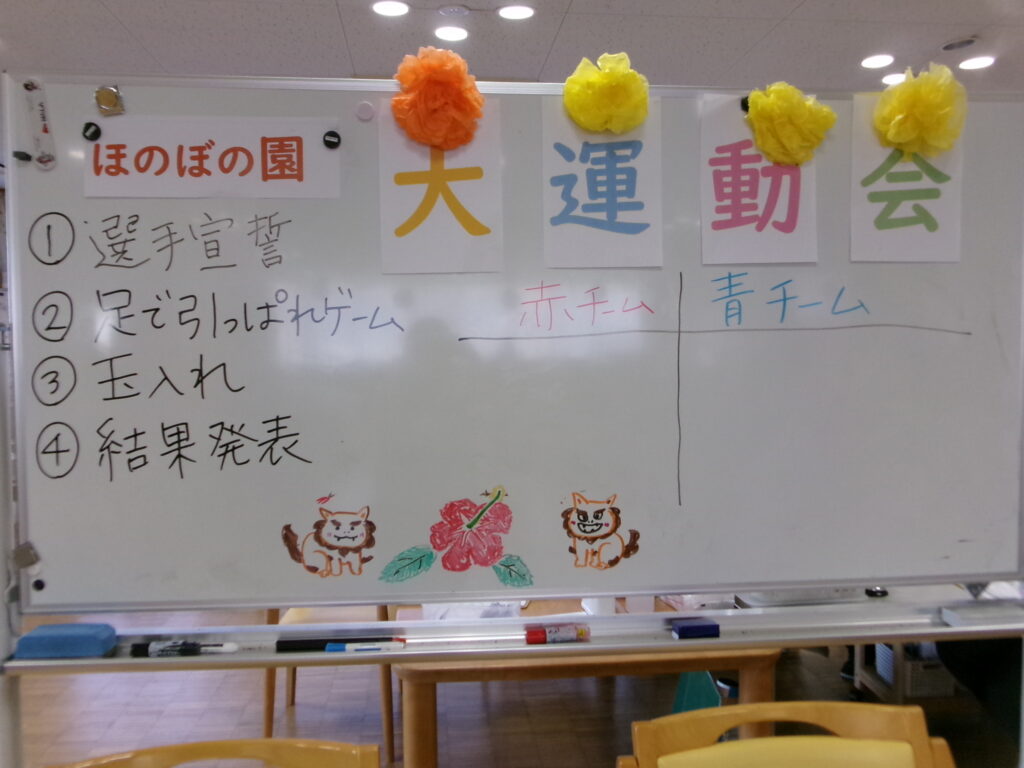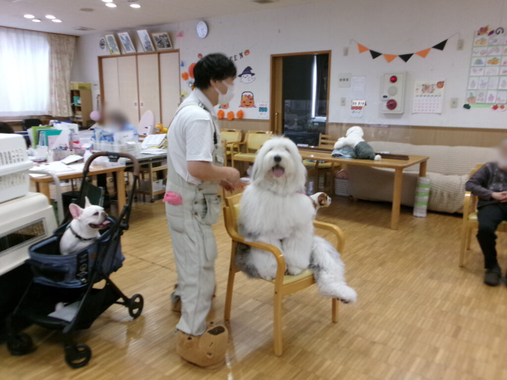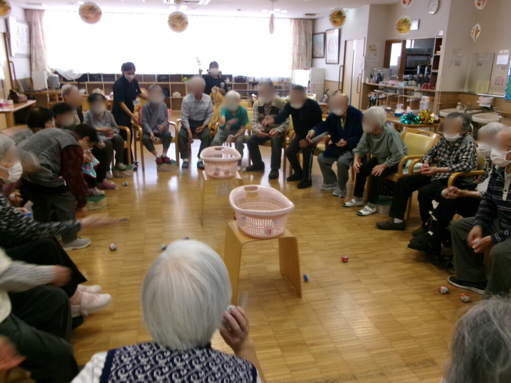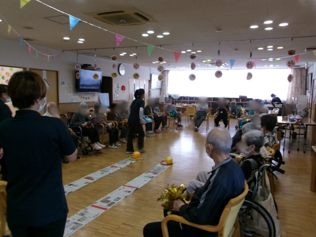 デイサービスセンター 2025年10月の行事 投稿日 2025年11月12日 著者 honobono カテゴリー デイサービス 10/10 ドッグセラピーが開催されました。 小型犬の「うとちゃん」 大型犬の「あむちゃん」 皆さんの「可愛い~」の声で溢れ返りました。癒しの時間をありがとうございました、次回も是非よろしくお願い致します! 10/13 デイサービスセンター内にて運動会が開催されました。 プログラムに沿って楽しい時間の始まり~ ボールを足で引き寄せる早さを競う「足で引っ張れ」ゲーム 団体戦の玉入れは物凄い盛り上がりでした