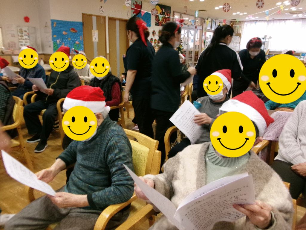 12/25、デイサービスセンターにて大合唱会が行われました。