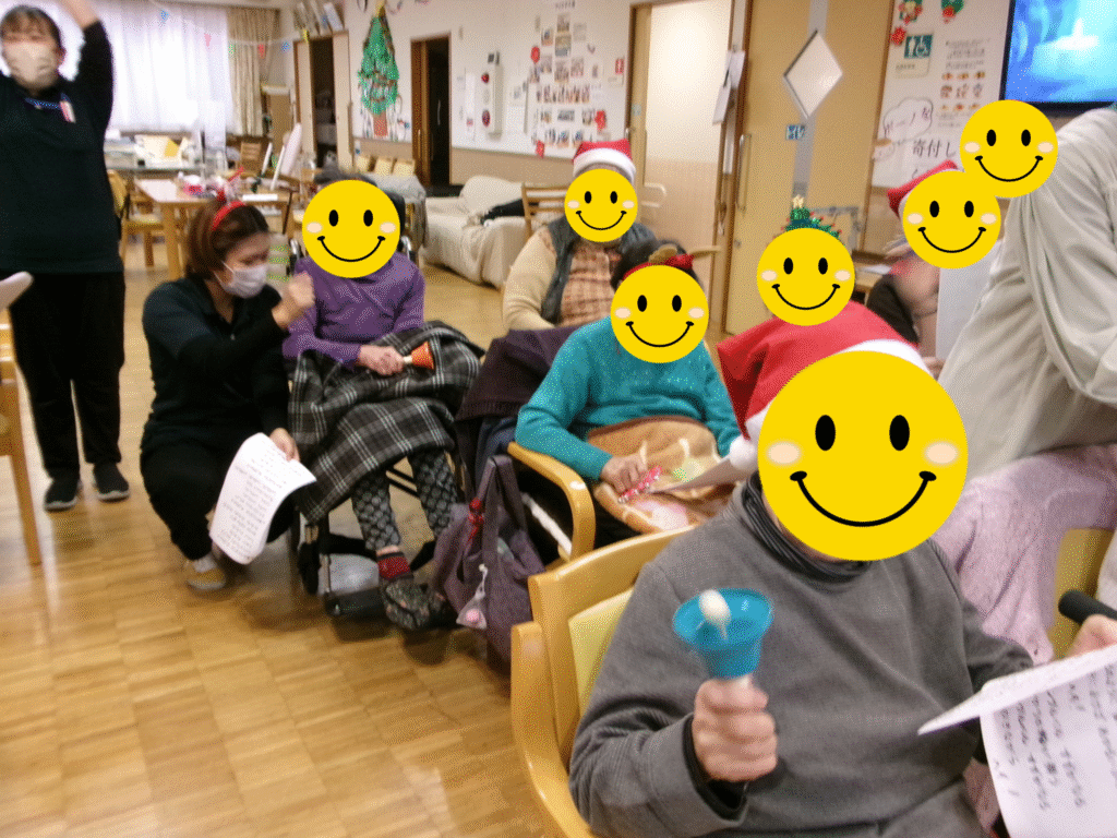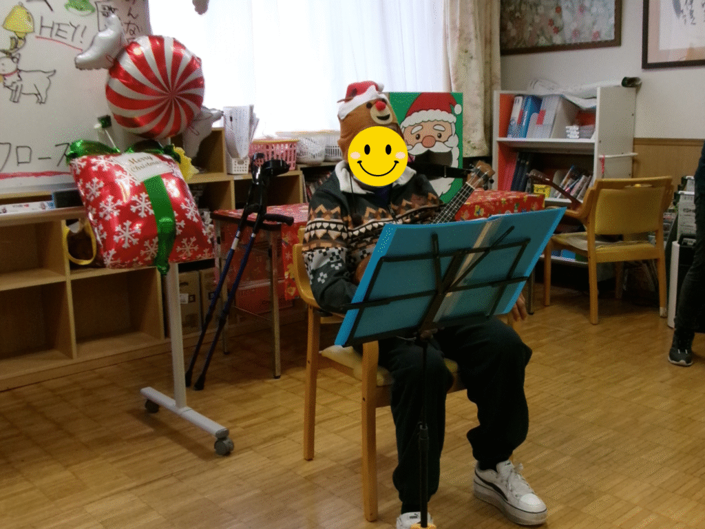 利用者様がウクレレを演奏してくださり、それに合わせて皆さんでクリスマスソングを合唱しました。