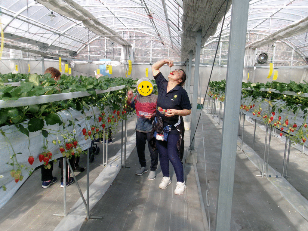 リハビリサロン 2026年2月の行事 投稿日 2026年3月12日 著者 honobono カテゴリー リハビリ 暖かくなってきたことで綺麗に「梅」が咲き始めたので、「旭公園」へ散歩しにお出かけをしました。 全利用者様に「いちご狩り」への参加案内を行いました。ほとんどの方々が参加し「大きいいちごで甘くて美味しかった!」と喜ばれました。 真剣になり、いちごを選び楽しそうでした 大きくて甘~いいちごを沢山食べて満足されていました。 また、行きたいねとの声もありました。